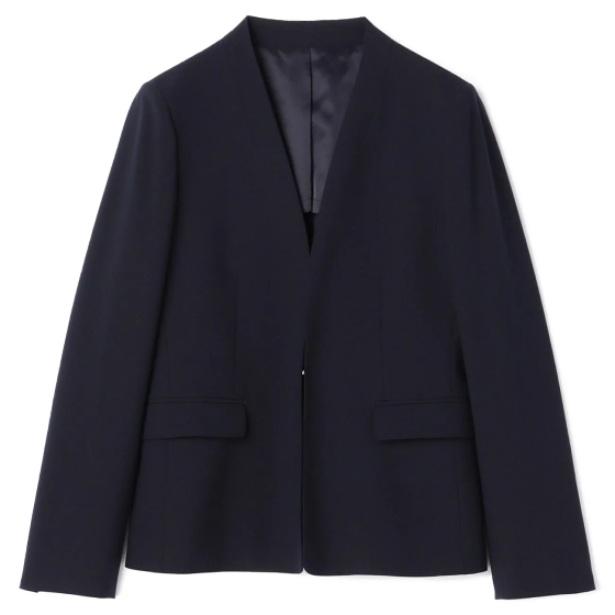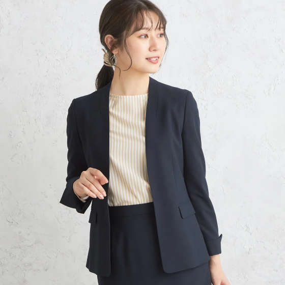 首や顔の周りをスッキリと見せ、長め丈で体型カバーもかなう
