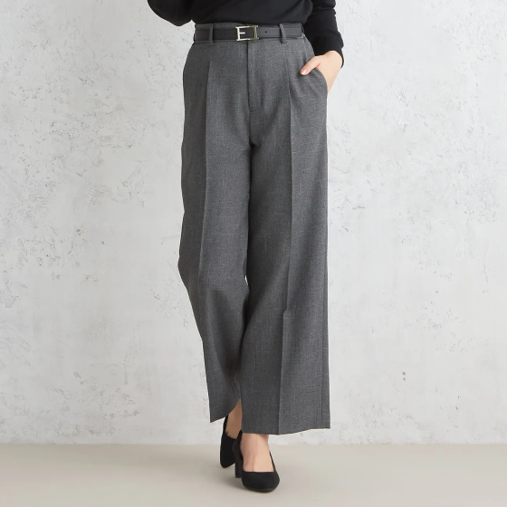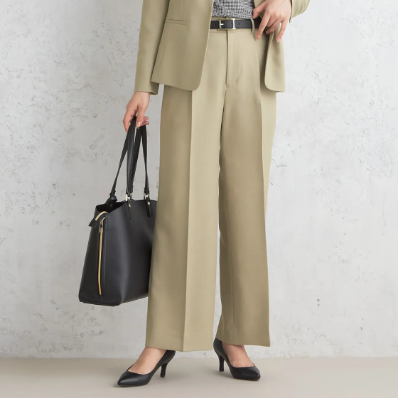 ジャストウエストで脚長効果&Iラインのシルエットで細見え